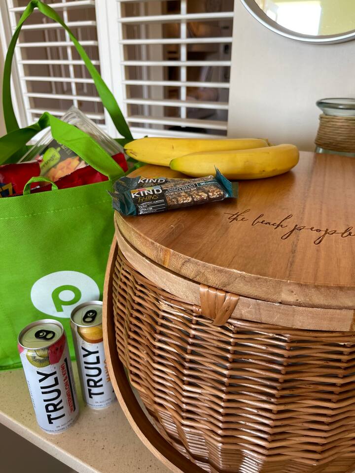 - Beach essentials Beach towels, umbrella, beach blanket, snorkeling gear