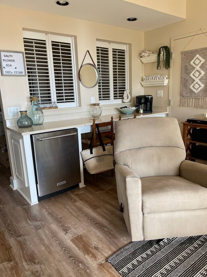 Fall in Love with Your 30A Escape at The Salty Blonde! Dreaming of stunning beaches and a relaxing getaway? Look no further! The Salty Blonde offers a beautifully updated condo in the heart of vibrant Gulf Place on 30A. Please note: While the condo can accommodate a maximum of 4 guests (including children and infants), we recommend a maximum of 2 adults for the most comfortable stay. The condo is not baby/childproofed. Luxury & Style Await: No detail has been overlooked in this stylish condo, boasting 11-foot ceilings, a completely remodeled kitchen, new flooring throughout, and a luxurious bathroom featuring a rain-forest shower head and wall-mounted sprayer. Step out onto the gorgeous balcony and soak in the breathtaking Gulf views! Beach & Amenities at Your Doorstep: Enjoy a short stroll to our private/deeded beach access and take advantage of the three community pools (seasonally heated). Gulf Place is a lively 30A community brimming with fantastic restaurants, unique shops, and more! Relaxing Retreat: Master Bedroom: Unwind in the master bedroom featuring a comfortable queen-sized bed with a Casper mattress, luxurious all-white linens, an en-suite full bathroom, and a Smart TV ready for your streaming logins. Additional Sleeping Nook: A cozy "half-bedroom" alcove off the hallway offers twin over twin bunk beds, perfect for kids or extra guests. Living Room: Sink into our plush and comfy sofa or relax in the recliner. A 55-inch Smart TV is ready for your streaming accounts. Gulf Place is one of the few spots on 30A where you really don't need a car. Kitchen: Prepare meals with ease in our fully equipped kitchen, complete with all the necessities and a few extras. Enjoy casual dining at the indoor breakfast bar or take your meals outside to the balcony, both seating two. The kitchen features beautiful new countertops, backsplash, cabinets, and appliances. Private Balcony Oasis: Your private balcony, furnished with a tall seat and a rocking Polywood chair, offers stunning views of the emerald blue and green Gulf of Mexico and the scenic 30A coastline. It's the perfect spot for morning coffee, evening cocktails, or simply enjoying the view during a quiet moment. Your Access Privileges & Resort Policy • Amenities: Full access to three community pools (heated seasonally), hot tubs, tennis courts, and shuffleboard. • HOA & Mother Nature: All amenities are managed by the Homeowners Association. The HOA reserves the right to close any facility for maintenance, emergency construction, or due to weather conditions. • Standardized Policy: Like all premier destinations, Gulf Place periodically undergoes restoration projects. These events are beyond the owners' control. No refunds, discounts, or date changes will be issued due to amenity closures, construction activity, or Mother Nature. Important Note: To ensure the most comfortable stay, we recommend a maximum of 2 adults (4 guests total). Please note the condo is not childproofed. Ready to book your unforgettable 30A escape?